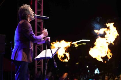 Kırıkkale’de Cumhuriyet Bayramı etkinlikleri kapsamında sahne alan şarkıcı Fettah Can, yağmur altında…