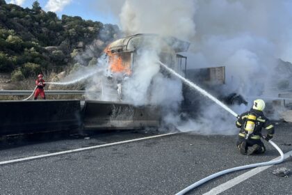Aydın-Muğla karayolu üzerinde meydana gelen kaza sonrası çıkan yangında tır kullanılmaz hale…