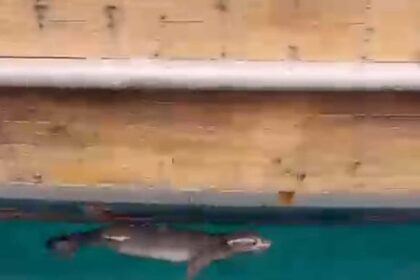 Fırat AKAY/BODRUM(Muğla),(DHA)-MUĞLA’nın Bodrum ilçesinde, iskelede yüzerken denizciler tarafından görülen fok, cep telefonu…