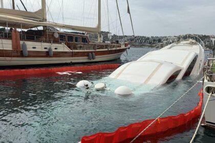 Bodrum’da iskeleye demirli lüks yat su alıp battı