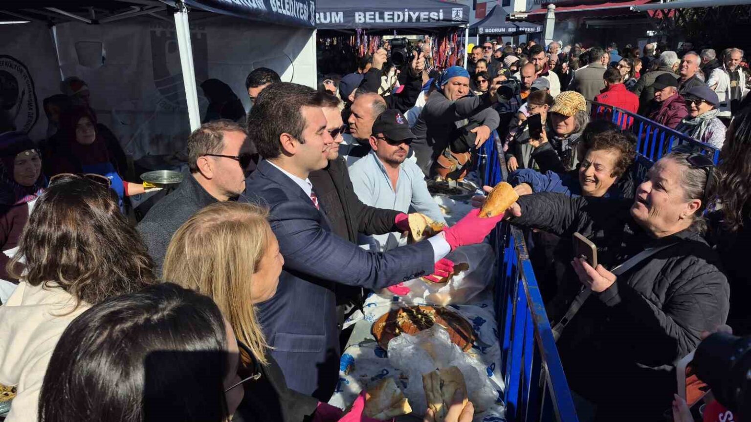 Bodrum Yarımada Karadenizliler Kültür ve Dayanışma Derneği tarafından geleneksel hale getirilen Bodrum Hamsi Festivali, İskele Meydanı’nda düzenlendi. Öğle saatlerine doğru başlayan festival her yıl olduğu gibi renkli görüntülere sahne oldu. Binlerce kişinin katıldığı festivalde 3 ton hamsi tavalarda mısır unuyla pişirilerek vatandaşlara dağıtıldı. Hamsi almak isteyen vatandaşlar, 100 metreyi aşan kuyruk oluşturdu. Bodrum Belediye Başkanı Tamer Mandalinci vatandaşlara ekmek arası hamsi dağıttı.
