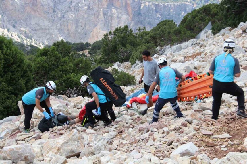 Fethiye’de derede mahsur kalan köpek kurtarıldı