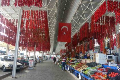 Muğla’nın Menteşe ilçesinde manavlar tarafından geleneksel yöntemlerle askıda kurutulan kışlık sebzeler, hem…