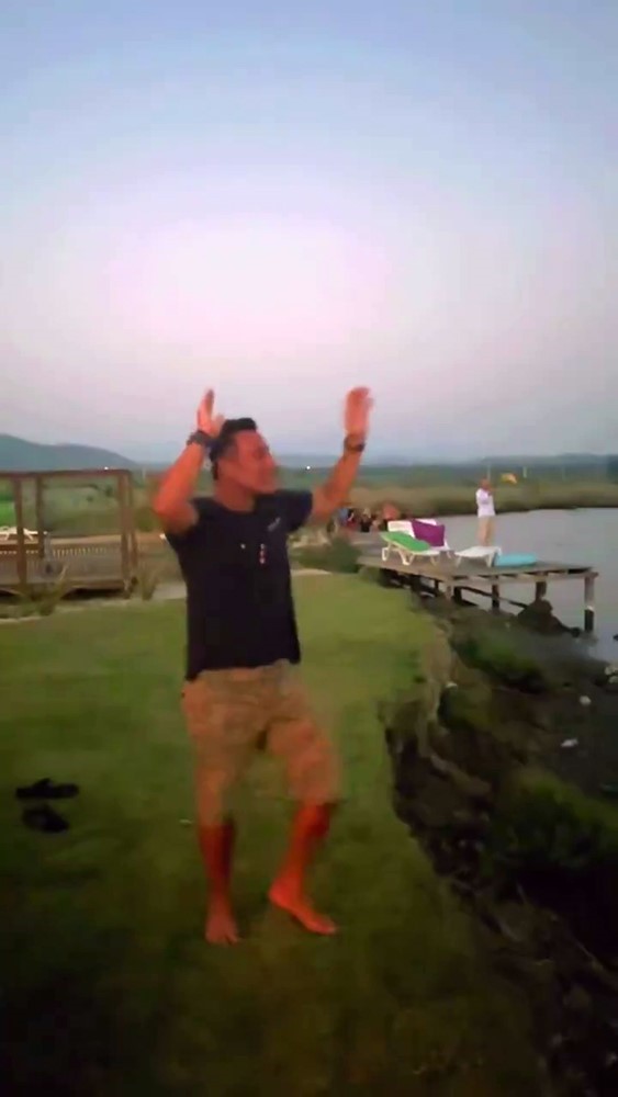 Turistik Akyaka Azmak Kenarı’nda yaşanan olay, bölgeye tatil için gelenlerin de ilgisini çekti. Mustafa Sandal, kıyıda vakit geçirirken teknede bulunan hayranları tarafından fark edildi. Hayranlar, sanatçının sevilen şarkısı Gidenler’i açtı. Sandal da kıyıdan şarkıya eşlik etti. Teknedekilerle karşılıklı söylenen şarkı, eğlenceli ve neşeli anlar oluşturdu.