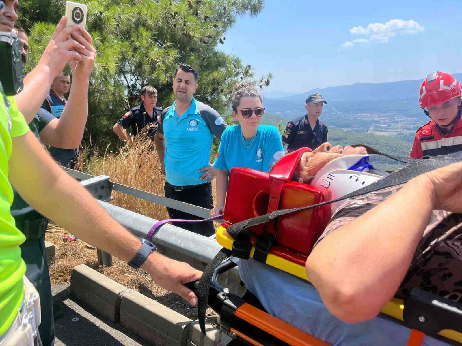 Kabloya dolanan Leyleği itfaiye ekipleri kurtardı
