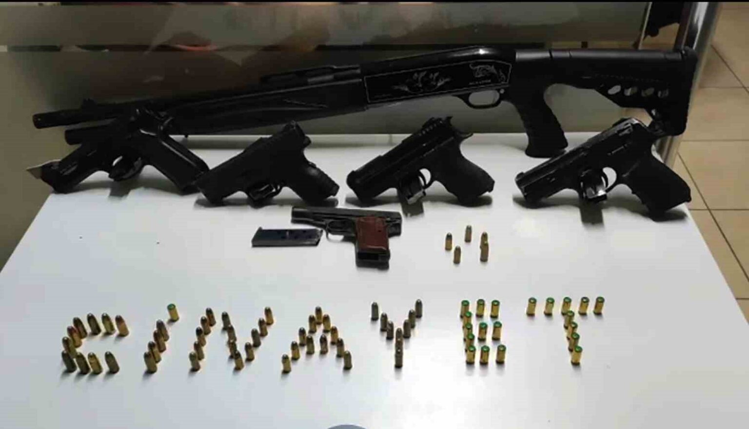 Marmaris ilçesinde ellerinde ruhsatsız silah bulunduğu tespit edilen şüphelilerin ev ve işyerlerinde arama yapıldı. Şüphelilerin üzerinde ve ikametinde yapılan aramada; 6 adet ruhsatsız tabanca, ruhsatsız pompalı tüfek, kurusıkı tabanca ve 154 adet tabancalara ait mermi ele geçirildi.