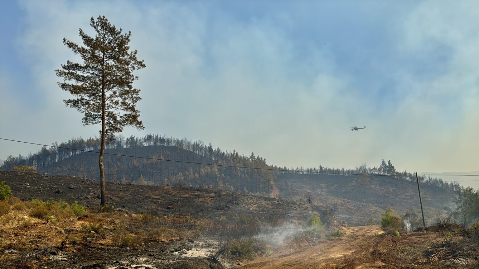 Gece boyunca 506 personel ve 166 araçla karadan müdahale edilen yangına, havanın aydınlamasıyla 10 uçak ve 14 helikopter de destek oldu. Akköprü, Sazak ile Pınar mahallelerinde 218 ev boşaltılırken, 582 kişi güvenli bölgelere tahliye edildi. 997 küçükbaş ve 582 büyükbaşın tahliyesi tamamlandı. 2 depo ve 2 ahır yangından etkilendi, 10 küçükbaş öldü. Eğitime ise 1 gün ara verildi.