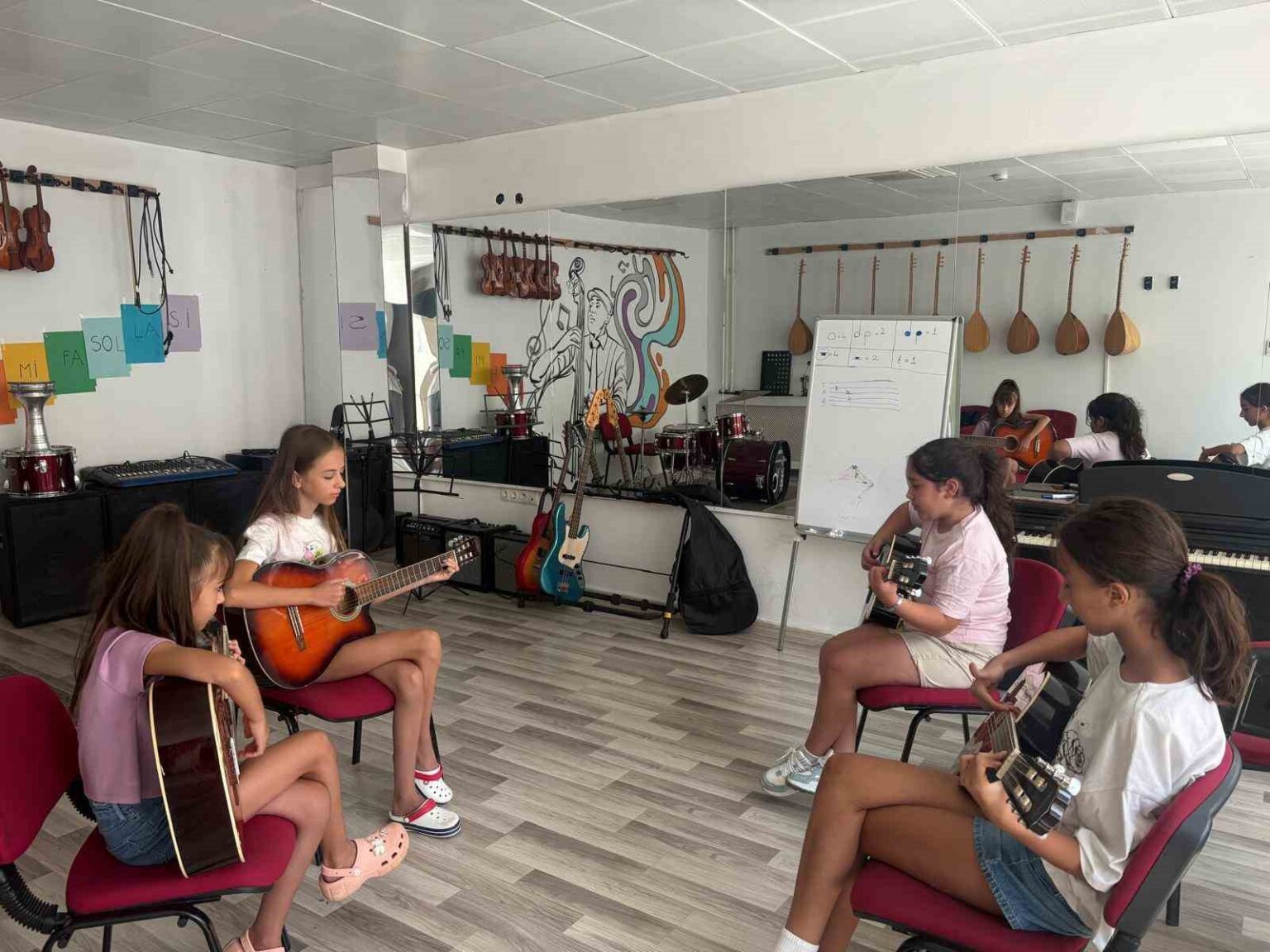Gitar, piyano, davul ve keman gibi çeşitli enstrüman derslerini kapsayan program, çocuklara hem teknik beceriler kazandırmayı hem de sosyal ve duygusal gelişimlerini desteklemeyi hedefliyor. Deneyimli eğitmenler eşliğinde gerçekleşen dersler, haftalık olarak düzenleniyor. Çocuklar bu derslerde enstrüman çalmanın inceliklerini öğrenirken, grup çalışmaları sayesinde de takım ruhunu ve iş birliğini deneyimleme fırsatı buluyor.
