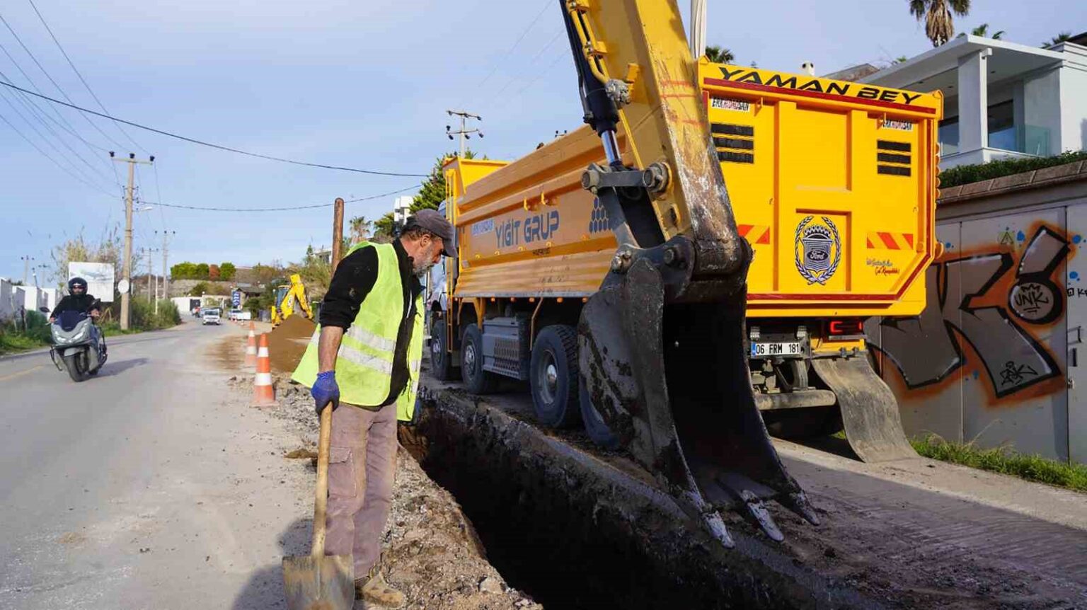 Muğla Büyükşehir Belediye Başkanı Ahmet Aras’ın, Bodrum’da su arz güvenliğini artırmak ve yıllardır yaşanan kayıp-kaçak sorunlarını kalıcı olarak çözmek amacıyla verdiği talimatlar doğrultusunda, projelerine devam eden Muğla Büyükşehir Belediyesi Su ve Kanalizasyon İdaresi (MUSKİ) Genel Müdürlüğü, Bodrum’a kesintisiz içme suyu sağlamak için çalışmalarını sürdürüyor. Bu kapsamda Bodrum Yarımadası’nın ana içme suyu iletim güzergâhlarından biri olan Kuzey Ring hattında başlatılan çalışmalarla, ekonomik ömrünü tamamlayan ve sık sık arızalara neden olan hatlar yenileniyor. Yalıkavak ve Gümüşlük mahalleleri güzergâhını kapsayan toplam 7 bin 665 metre uzunluğundaki hattın yenilenmesiyle, Bodrum’un en büyük sorunlarından biri olan su kayıplarının önüne geçilerek su arzının tamamen karşılanması hedefleniyor.