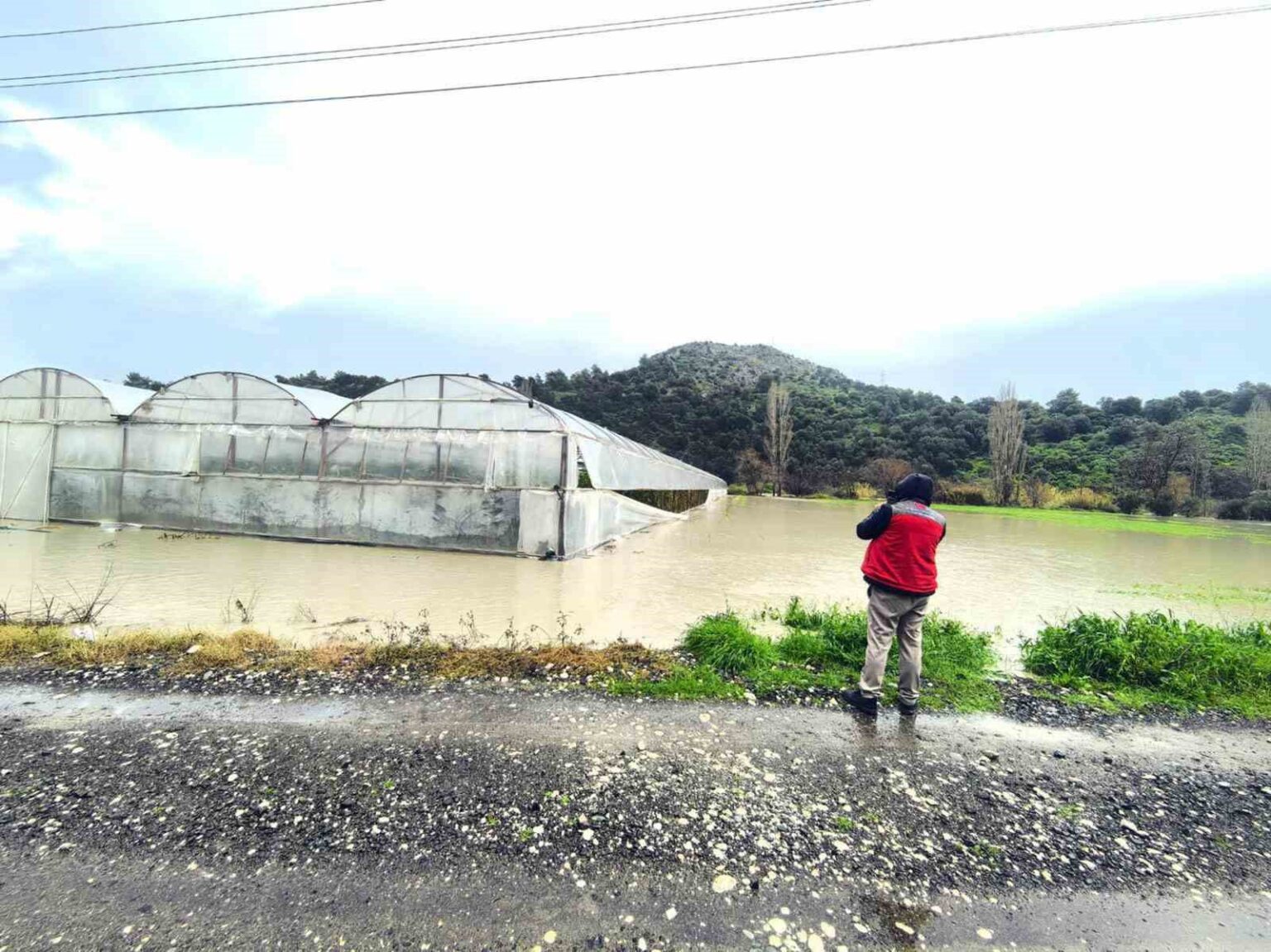 Muğla’nın Köyceğiz, Ortaca ve Dalaman ilçesinde sağanak yağış sonrası taşan dereler üzerindeki seralarda ve bahçelerde yaşanan afet sonrası zarar gören alanlarda ön hasar tespit çalışması yapılıyor.