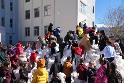 Muğla’nın Bodrum ilçesinde bir ilkokula getirilen yapay kar ile çocuklar gönüllerince eğlendi.…