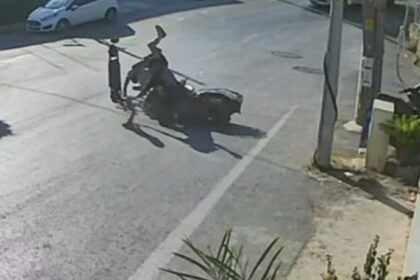 Bodrum’da skuter ile motosikletin çarpıştığı kaza kamerada; 3 yaralı