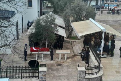 Muğla’da hayatını kaybeden emekli Jandarma Albay Ertuğrul Köroğlu, Türk bayrağına sarılı tabutla…