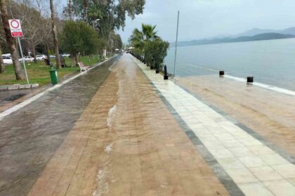 Köyceğiz Gölü taştı, kordon sular altında kaldı
