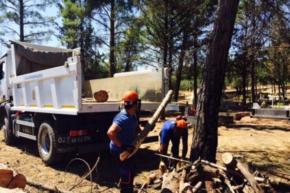 Muğla’da mezarlıkta budanan ağaçlar ihtiyaç sahiplerine odun oluyor
