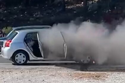 Muğla’nın Sakar Geçidi mevkiinde seyir halindeki bir otomobilin motor kısmında çıkan yangın…
