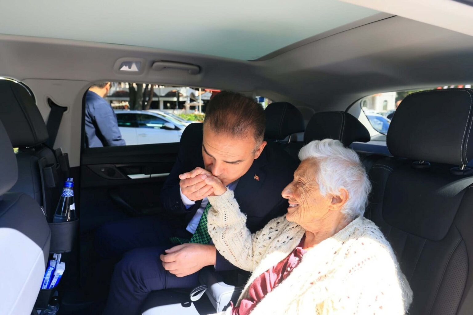 Cavit AKGÜN / MUĞLA, (DHA)-MUĞLA Valisi İdris Akbıyık, 1 Ekim Dünya Yaşlılar Günü’nde huzurevi sakini 91 yaşındaki Neylüfer Talay’ın TOGG ile yolculuk yapma isteğini geri çevirmedi. Vali Akbıyık, Talay ile birlikte Cumhuriyet Meydanı’na kadar makam aracıyla yolculuk yaptı.
