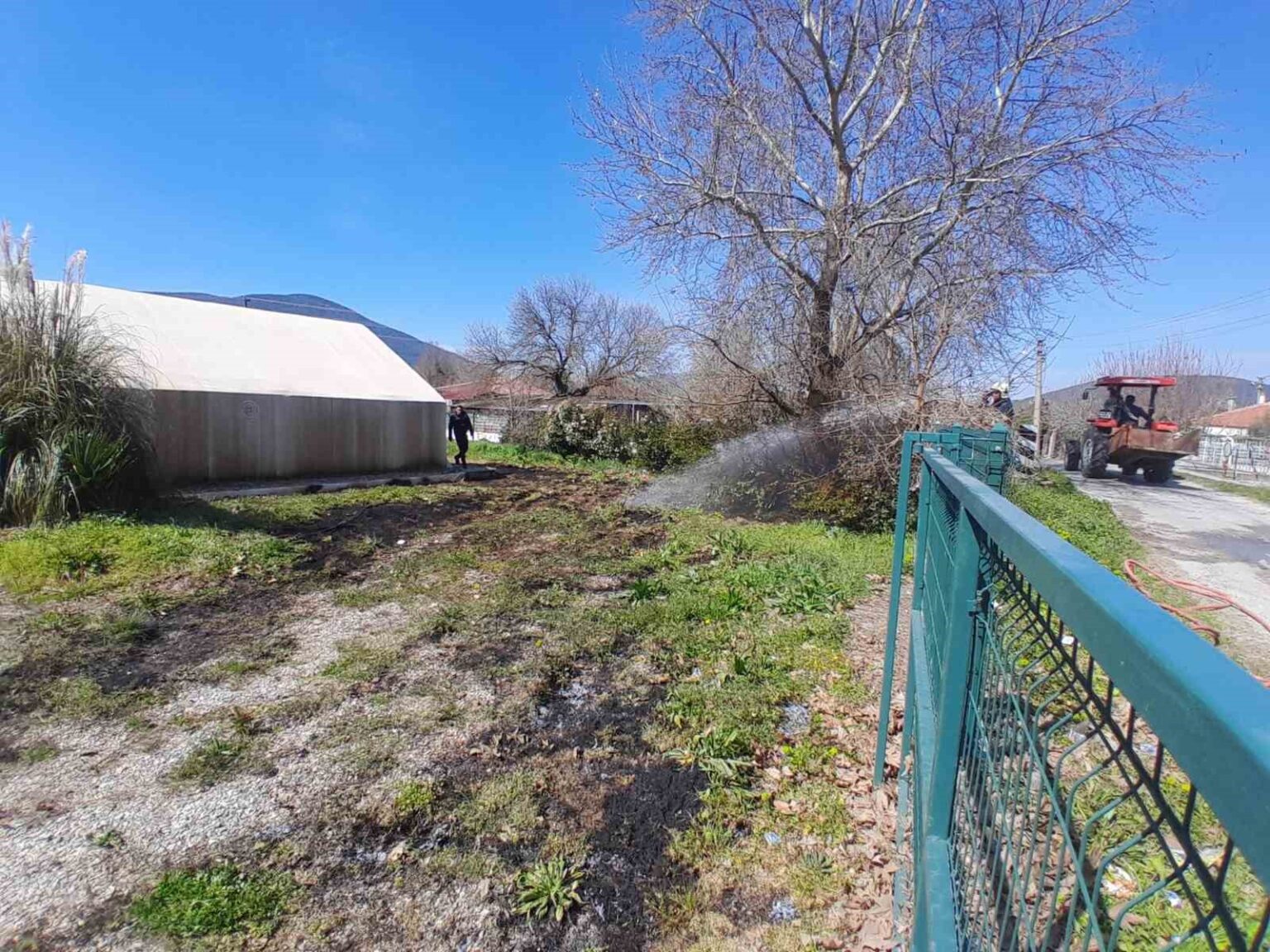 112 Acil Çağrı Merkezine bilgi verilmesi üzerine bölgeye Muğla Büyükşehir Belediyesi İtfaiye acil müdahale aracı sevk edildi. Yangına ilk müdahale bölgede bulunan Menteşe Belediyesine ait su tankeri ile yapıldı. Olay yerine gelen itfaiye ekipleri tarafından otluk alanda başlayan yangın Muğla Büyükşehir Belediyesine ait ipek böceği besleme çadırına sıçradı. Ekiplerin müdahalesi ile yaklaşık 4 metrelik taban kısmı zarar gördü. Ayrıca bir çınar ağacı kısmen yanarken, çevredeki otluk alan da yangından etkilendi.